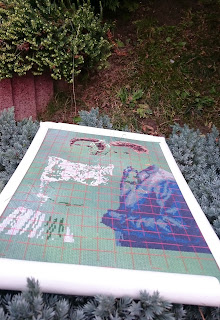 Powracam do tego portretu trochę z obawą. W lecie zarzuciłam wyszywanie, bo miałam problem z doborem nici. Sukienka i garnitur są prawie gotowe. Nie jestem do końca z nich zadowolona, ale już są. Fryzury gotowe. Mam nawet pomysł na bukiet panny młodej, żeby nie "wtopił się" w sukienkę. I jeszcze tylko buźki mi zostały. Młoda para nie może być żółta, ani zbyt brązowa. Mam już trzeci, czy czwarty zestaw nici i nie jestem przekonana. No, ale cóż - w końcu trzeba wziąć tego byka za rogi i dokończyć dzieło, które w tym momencie wygląda tak:
